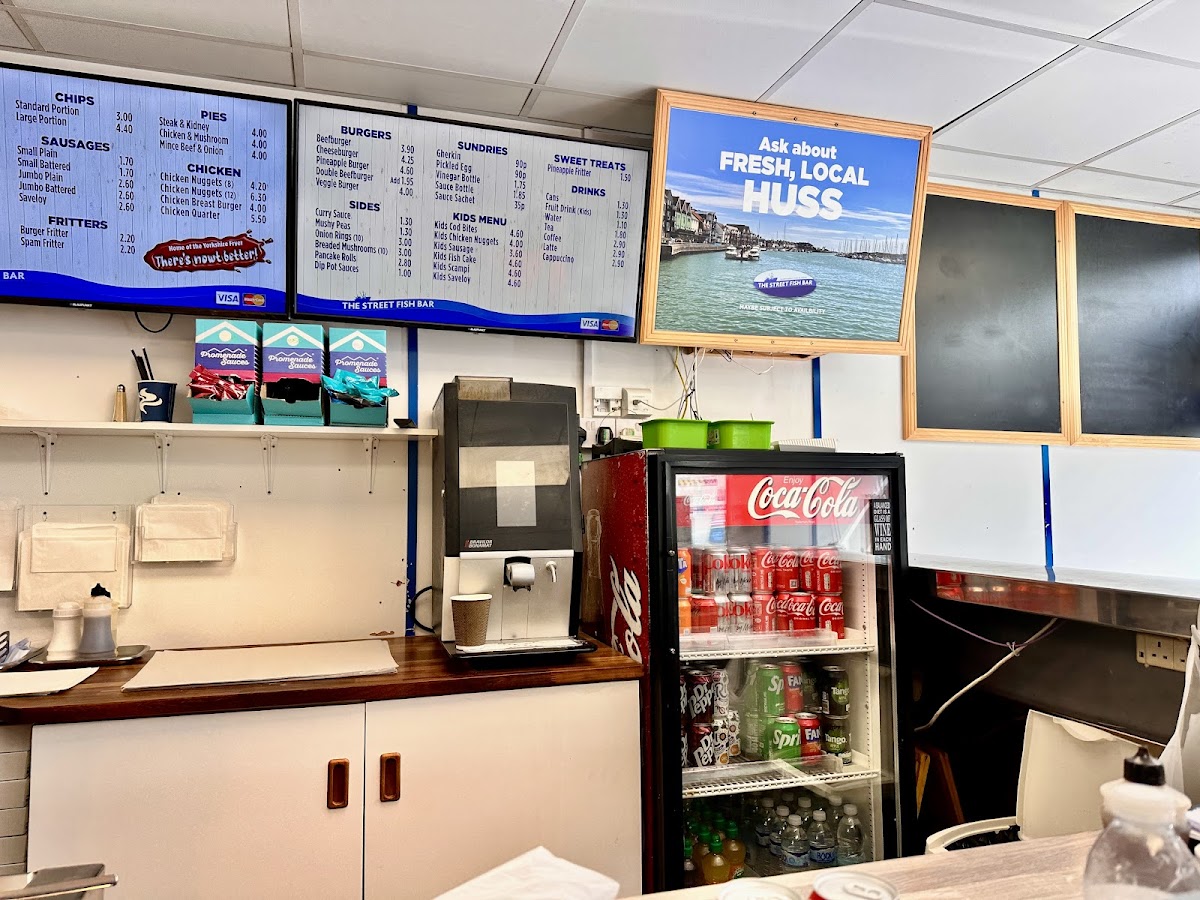 The menu at The Street Fish Bar offers a satisfying mix of classic British seafood dishes with a focus on quality and freshness. The standout option is their Fish and Chips, which is a true highlight, featuring crispy battered fish served alongside golden, perfectly fried chips. The generous portion ensures a filling meal, making it a popular choice for many. For those looking for variety, the restaurant also offers other delicious options such as the juicy Fish Burger and the savory Scampi and Chips, both served with a side of tartar sauce that enhances the flavors. The menu caters to different tastes, whether you're in the mood for something hearty like the Fish and Chips or prefer a lighter option like the Cod Salad. With its reasonably priced menu and inviting atmosphere, The Street Fish Bar continues to be a favorite for both locals and visitors looking to enjoy traditional seafood done right.